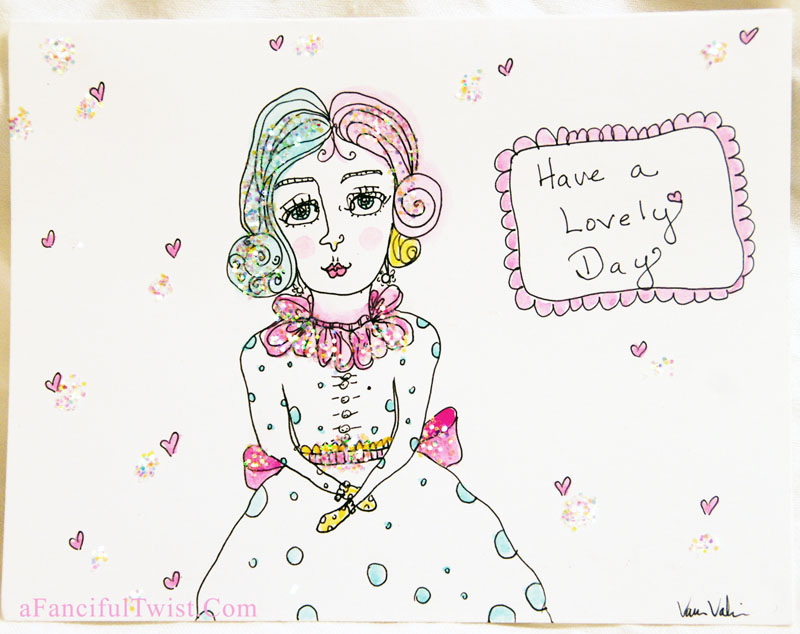 Such innocence and kindness in your beautiful art cards Vanessa. I love mine so much, as she sits framed on my bookshelf, always telling me to have a lovely day! What a nice gal she is! 😉
