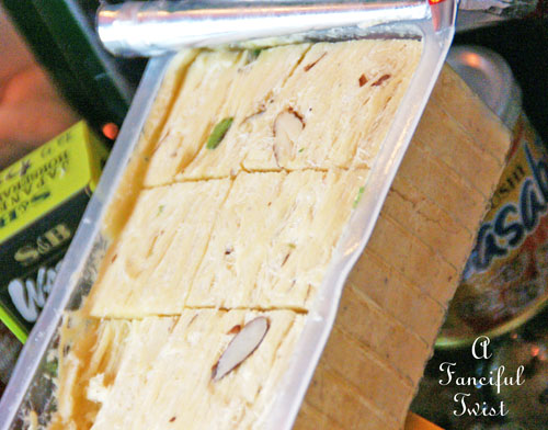 If you are wondering what the item in the first picture is, it's called Soan Papdi.