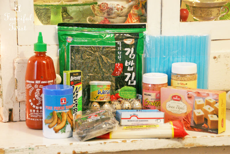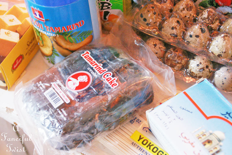 Quail eggs, tamarind, sushi! This is MY grocery pile! Going to stock up at an ethnic food store is certainly a grand day out. I see you have straws.