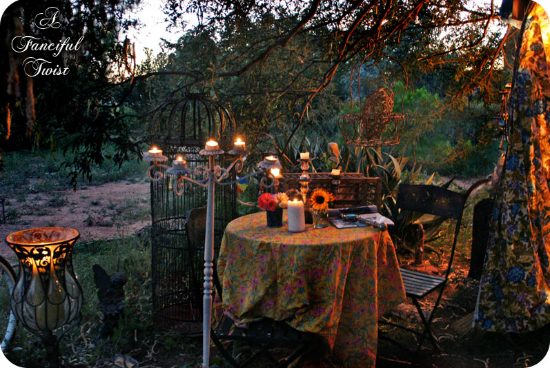 I want to fall asleep and wake up in your Gypsy garden! At dusk. With candles glowing while wearing sparkly jewelry and eating cupcakes! Your posts always makes my imagination run wild and helps me forget the annoyances of the work day.