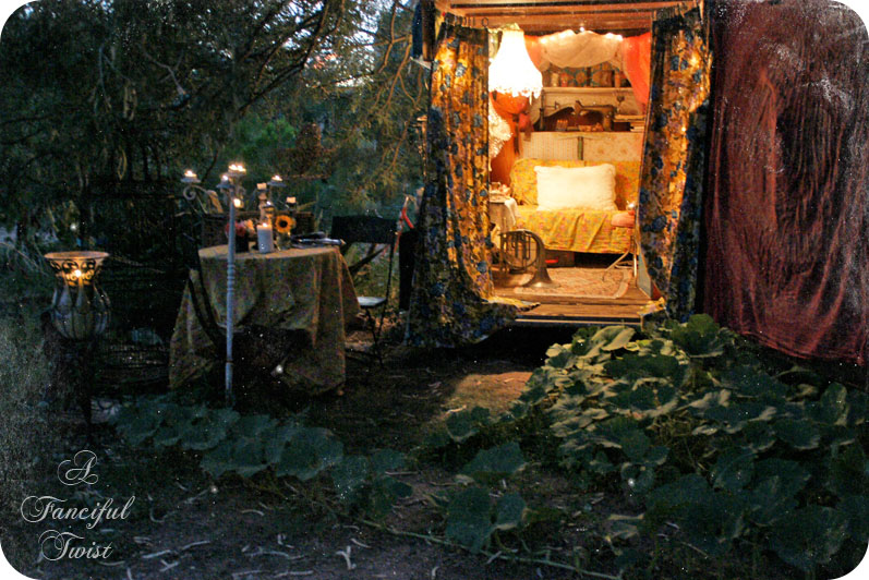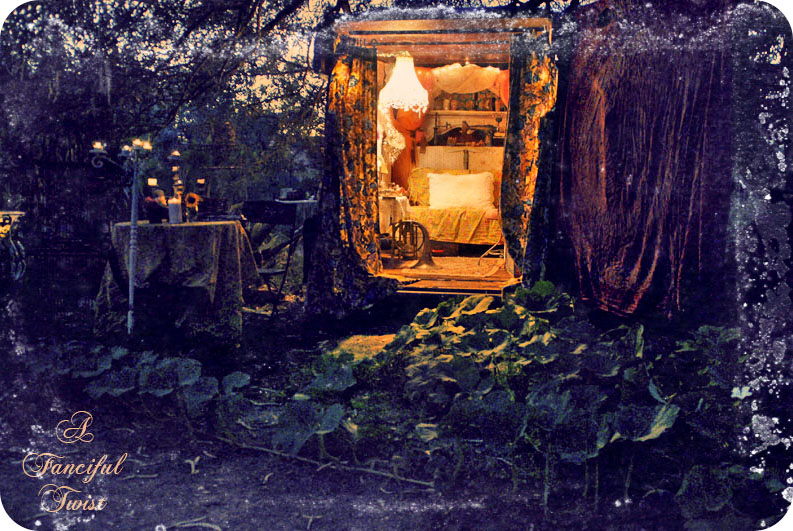 I just love the night pictures with the candles burning and the lit wagon beckoning you to step inside. What magic awaits you in there, your fortune to be told by an exotic beautiful woman with delicately pointed ears, maybe the wagon will transport you deep into a faerie forrest. I do so love your wild imagination and beautiful way with pictures. I just finally figured out how to become a subscriber… Yea! I am slowly figuring out the computer blog thing, even if my magic wand won’t work on it. Thank you for your beauty!