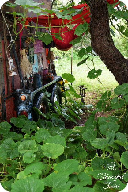 I love your Post… the Gypsy Wagon and especially your delightful Pumpkin Patch… the leaves are gi-normous and surreal! What a Blessed Girl you are, to have such magic right in your back yard coupled by a fertile imagination and way with words and photography to Bless the rest of us by sharing it all… THANK YOU!