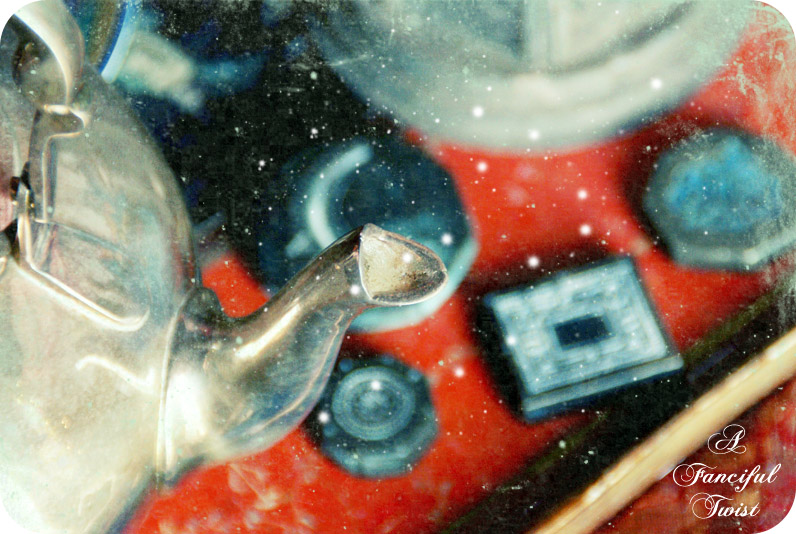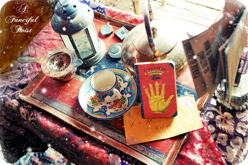 I am in the midst of a blizzard and I sure could use some tea right now. I could also use your Gypsy Garden for a refuge. It is so cold right now. Brrrrrrrrrrrrr!!!! Where did my sun go? Where is the light? Oh I see! You have it at your place. And such wonderful colors too! Love the victorian frocks. It appears the girls have taken flight again without their clothes. They do that from time to time. Return they will, all aglow from their wanderings! Moon dust will do that sometimes.
