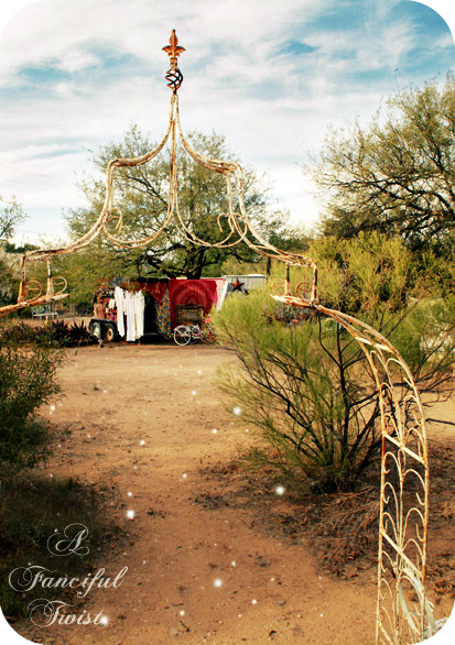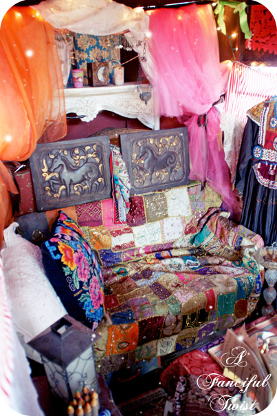 HAPPY, HAPPY almost your Birthday Miss Loverrly! : ) I had such a fabulous old time wandering about the magical confines of your luminous and mysterious gypsy garden! It’s beautiful beyond all words and measure, I’m sure! 🙂 I think Titania would feel quite at home there, nestled in amongst all the elegant draperies and pillows!! Yes, indeedy!