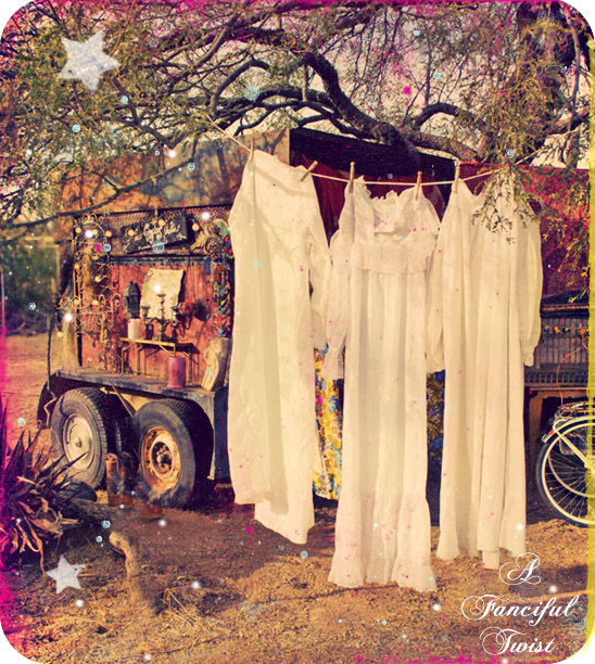 Oh please please please!!! pick me to be a gypsy sister!! I already have a name ;-). Oh and I must apologize for my naughty behavior the last time I was here…I think it’s the dark winter days creeping into my heart that sometimes brings out the ugly ;-/. But if I had a lovely vintage frock to scamper about the desert floor in I believe the ugly would go away ;-). Alas for my city dwelling self…tee hee!!!