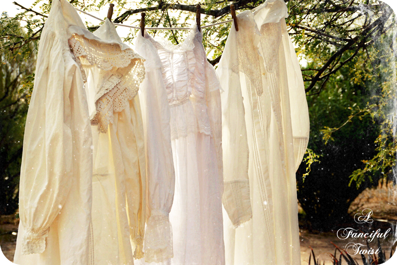 As you can see (from the garments hanging in the tree above), I have been rather naughty, collecting Antique Victorian frocks to make up for my missing one.