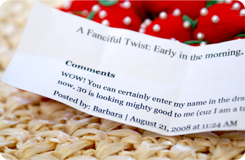 i am already addicted to your blog. if i could astro travel it would certainly be to your gorgeous studio, house, shop and take tea and sweets with you, and perhaps look through your fabrics. your words are so enchanting and i wait patiently for the next entry. congrats to barbara:) i’ll be back mmwah rosey