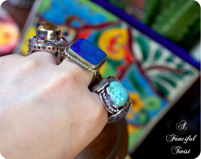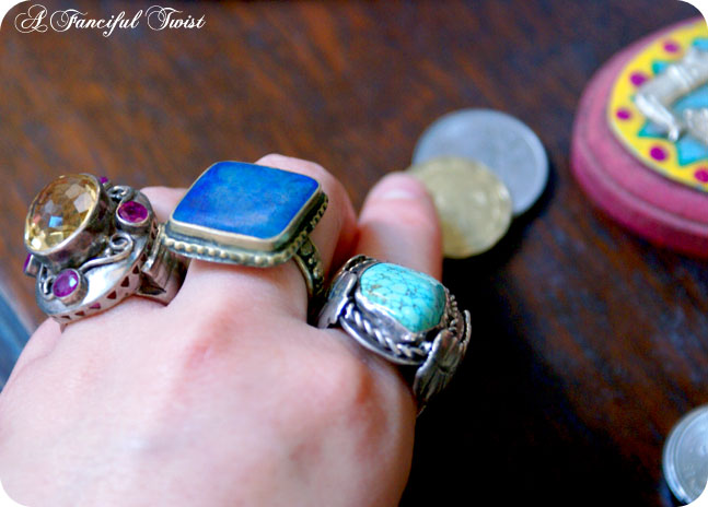 I love the photos with the gorgeous rings – I’d make a beeline for the jewelry box. Jewels have a mystic about them and tell much about the person who wore them. Although, maybe they just reflect the mood of the person at the time – pearls for a quiet mood, turquoise for those times when you vibrate with excitement.