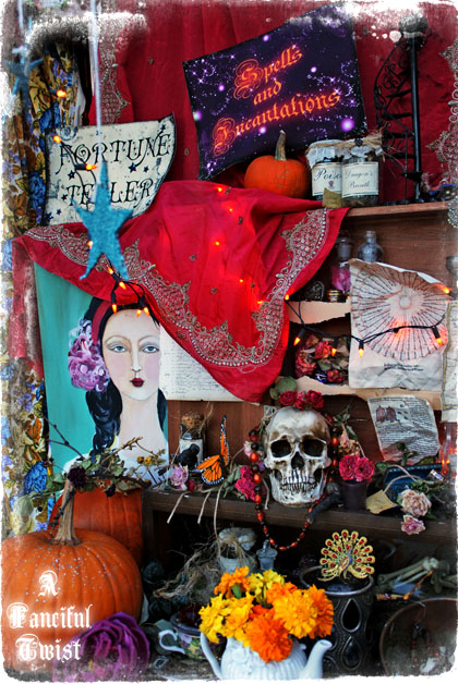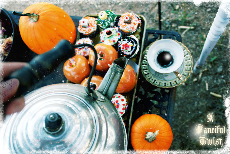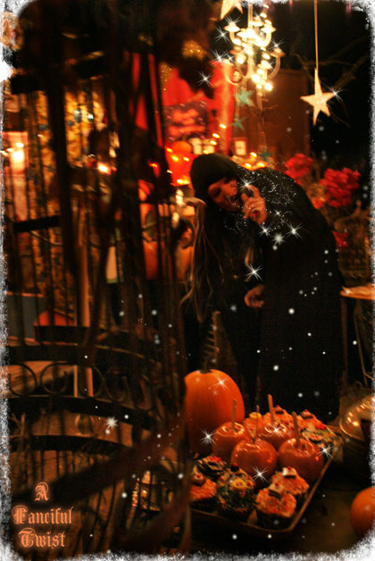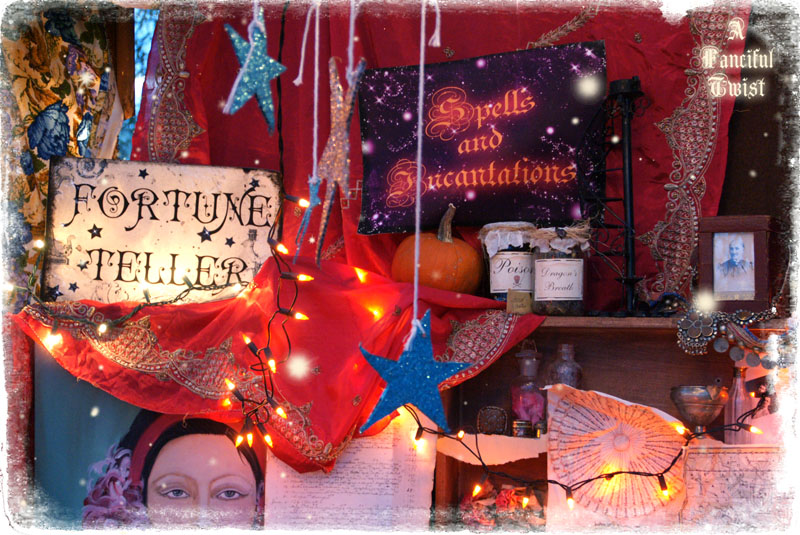 OH me, OH my, what a wickedly spookiful, and haunting time I’ve had!! I’ve just flown in on my little broom from the boring world outside to find this magical and candy coated time awaiting me here!! What fun!!! And you costume!! My goodness me!! You ARE the good witch of the west, methinks!! I was ever so frightened of the fortune teller……but I think I may just take a nibble of some of these delicious sweet things!!