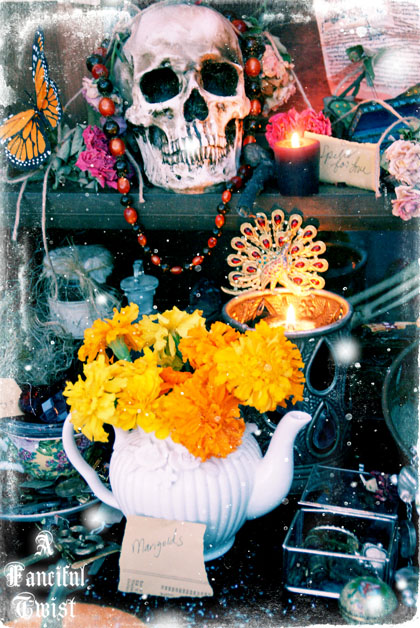 What a halloween goddess you are!! I so enjoyed visiting your post and that of some of your party goers! I wanted so much to participate but was too busy with work to make it happen. Though my work has been fabulously fun of late! I am the lady that did the faerie wedding you were kind enough to comment on a while back (I actually got to create a huge party designed around the faerie and myth theme which I will blog about later). I just wanted to say again how much I enjoy your blog, you are becoming a source of inspiration for me I am happy to say. If you are not too tired of blogging you might get a kick out of a wedding I posted about a bride that was totally into pumpkins… I think she even tops you!! (triciafountainedesign.com/blog/ Anyway thank you so much for sharing all your wonderful creative gifts, I just revel in them!!