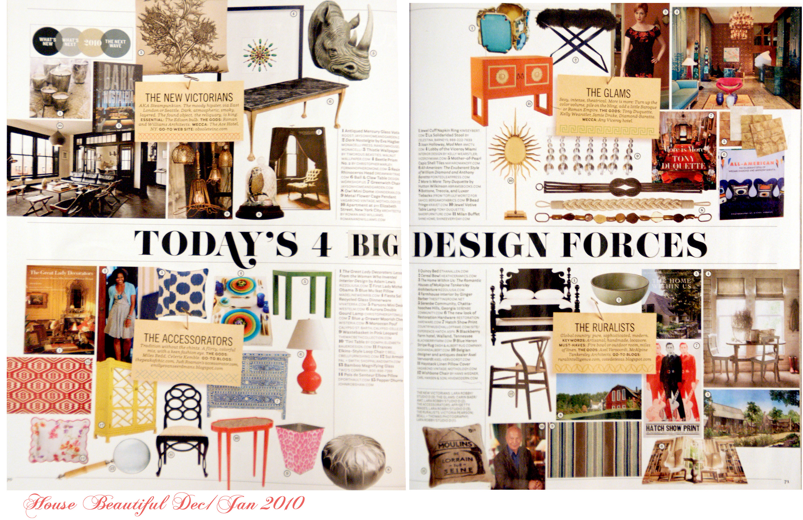 Love this spread, as I am definately a “New Victorian”, but mixed with the “Ruralist”. give me grain sacks and chickens and a crystal chandelier and I’m happy.