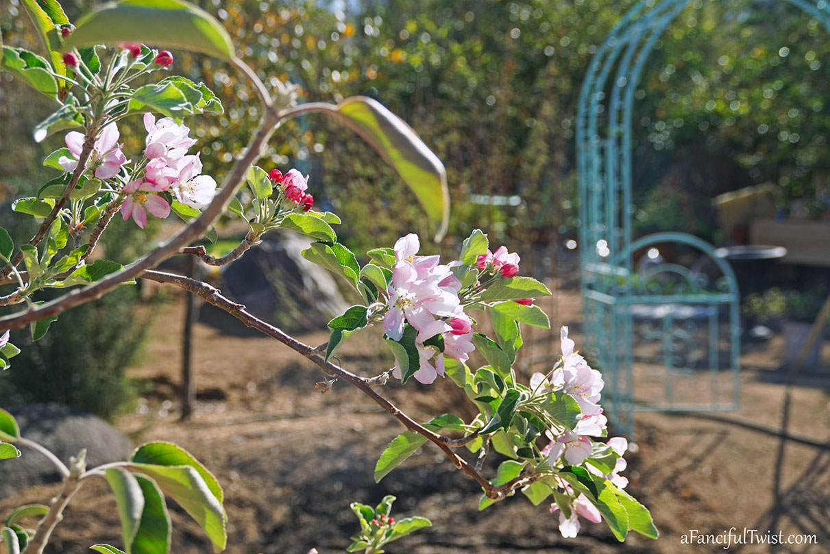 The wildflowers I planted in December are bushy, bulbs are blooming and the fruit trees are full of blossoms.