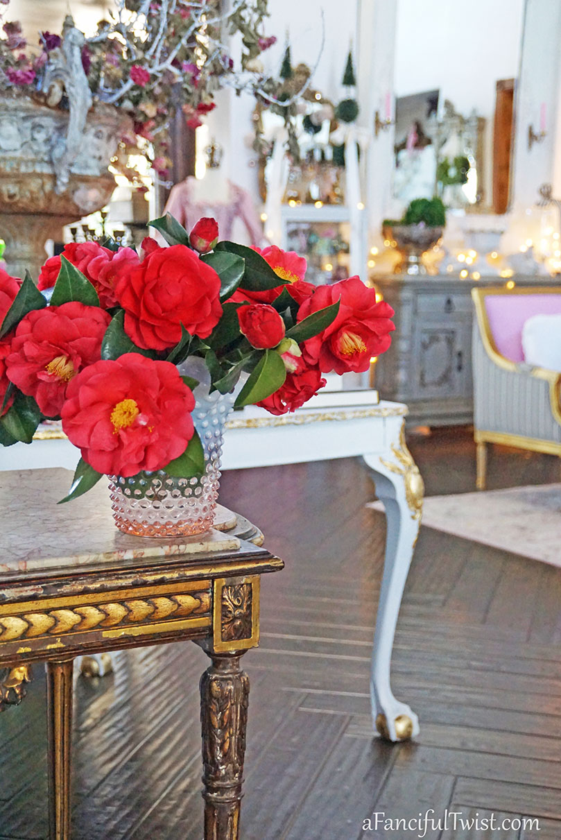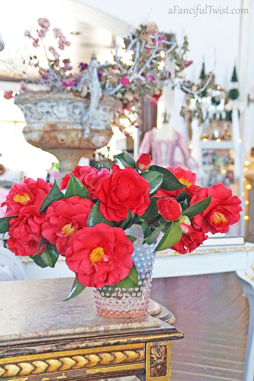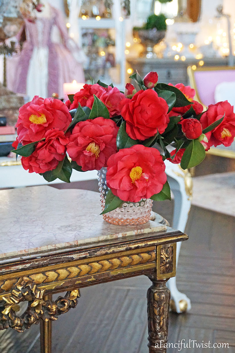 I brought a bunch of camellias inside, and then could not decide which photos to share as I took so many.