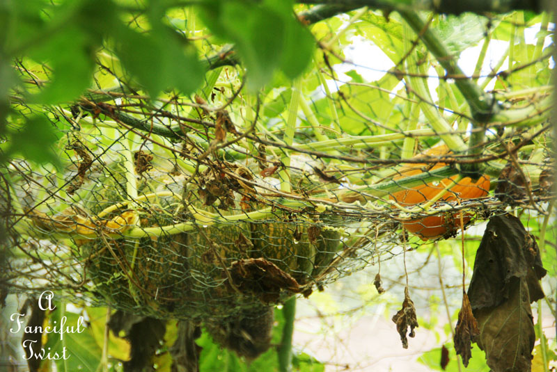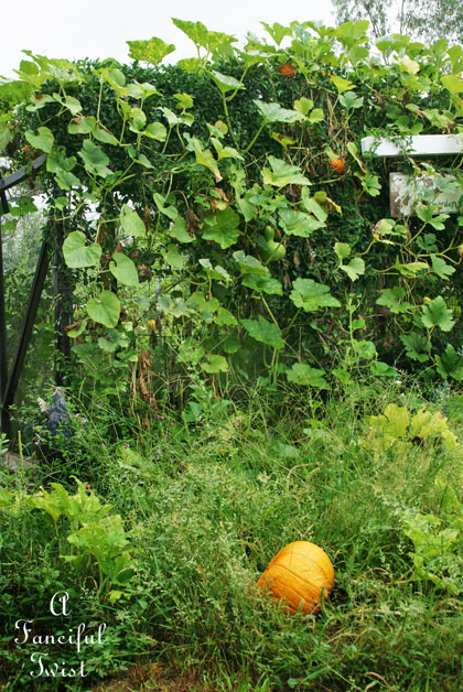 I haven't shown Mister Lovee the giant fairy tale pumpkin growing on top of the enclosed/domed garden space.
