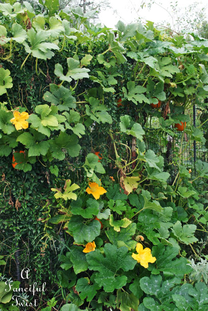 Pumpkin vines start to look tired, and yet they surprise us with more blossoms everyday.