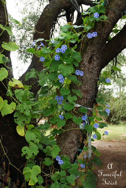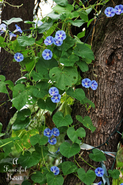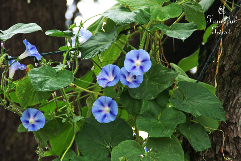 Your morning glories are beautiful. They are such a wonderful flowering vein, fragile yet such luscious color. I’m enjoying the cooler weather yet the humidity is wearing on me a little, but hey at some point we’ll dry out a bit and moss will quit growing on my north side :o)