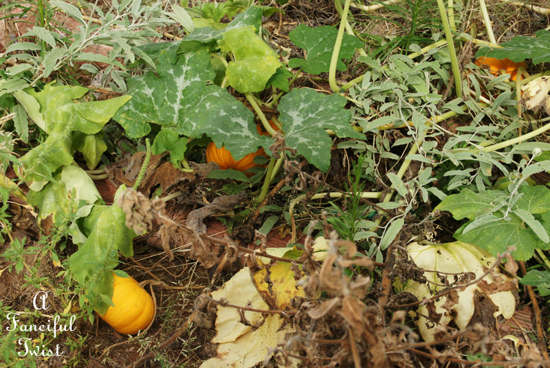 See all the little pumpkins hiding under the leaves?