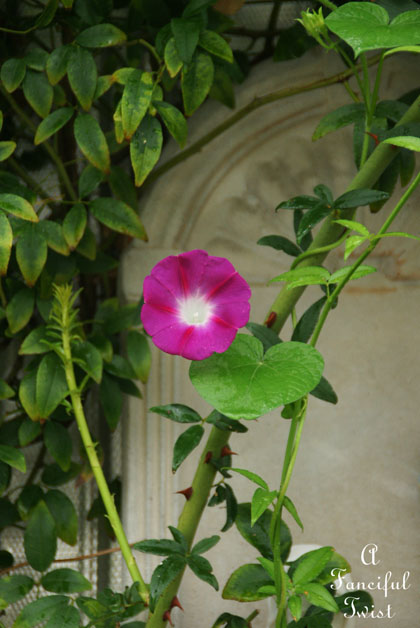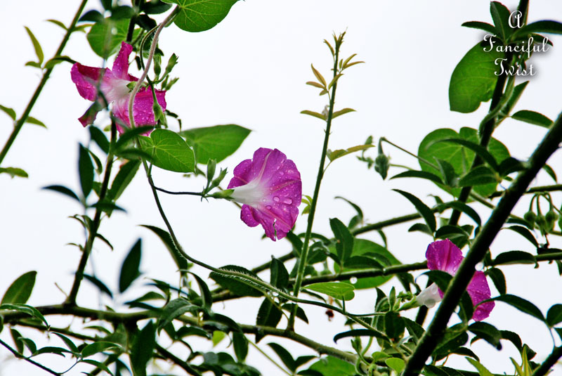 As the bright pink morning glories beg for the sun to stay away.