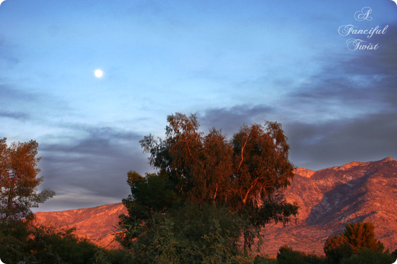 Just as the pink skies fade, the mountains turn from blue to pink themselves.  Oh and, have you seen the moon the last couple of nights?  It was glowing…