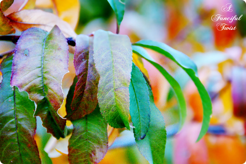 Yesterday I was out for a walk (I do laps around our property), and I almost fainted when I saw the peach tree.  It was exploding with delicious colors…