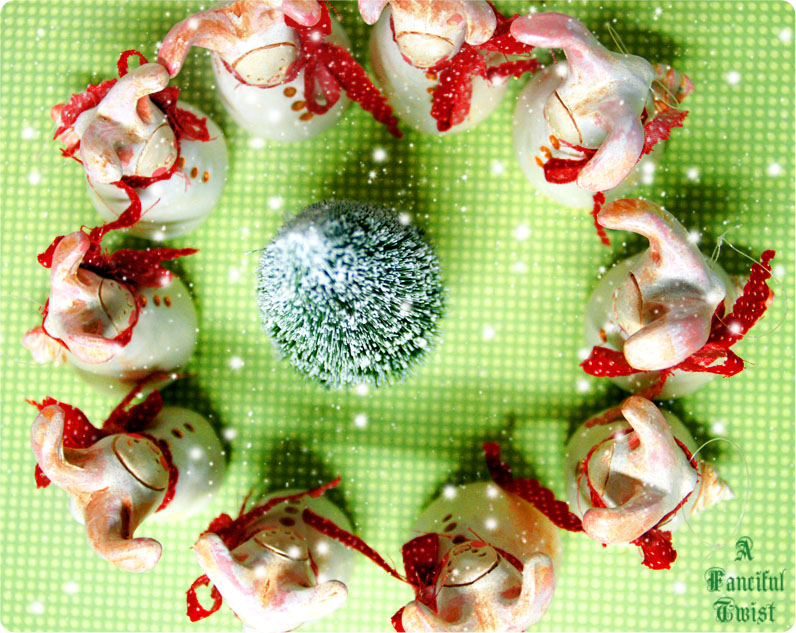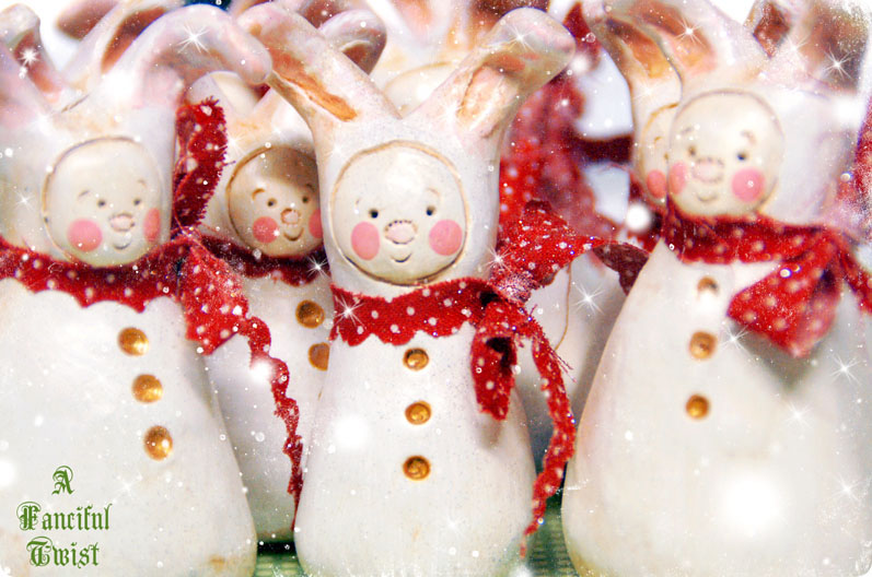 Oh, I love your wee bunny elflings! I love, too, how they gathered in a circle for a farewell dance and then lined up to kiss you good-bye. I’m sure it is hard to part with any of your artwork, but especially I can imagine the mama feelings you have for any creations that have faces! Just think of the oohing and aahing that will be going on in the houses that receive these sweetie pies. Can’t wait ’til you are back again to share more goodies with us! : )