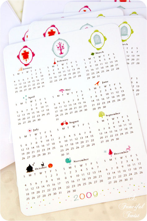 A postcard sized, 2009 Calendar.  Which is perfect for a New Year's card too, me thinks…  Mr. Lovee will be sending these out for Hanukkah…