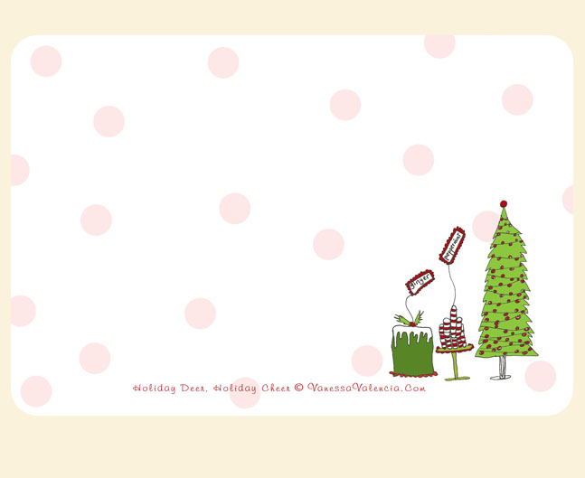 I love, love, love the new holiday cards! And I have a pink Christmas tree, too… I guess great minds think alike! Is yours covered in glitter too? 😉