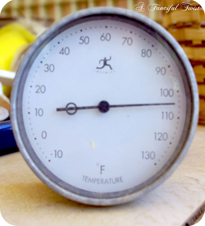 Oh and, just because I am shameless sometimes, when it comes to heat sympathy… Thermometer in the shade on left, and in the sun on right…