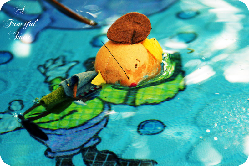 Oh they are just so cute. When I was a little girl I could never resist cute little felt mice done up in clothes and was always begging my parents to buy me them from gift shops. I know I would have loved these! I hope he got out of the water OK though… I’m worried now!