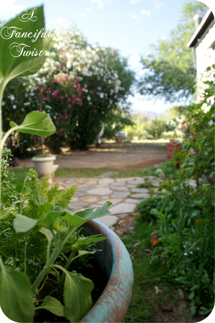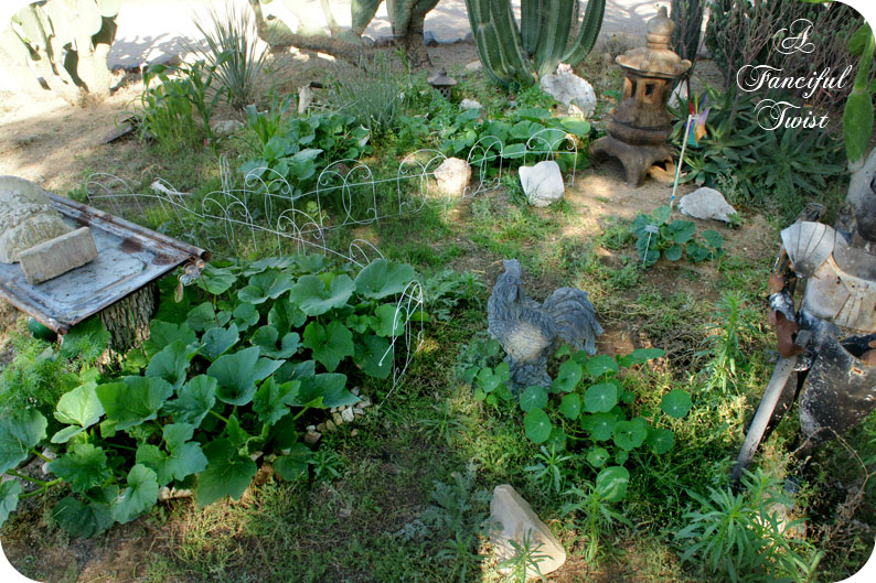 They are actually growing in a little garden I planted under a big mesquite tree, just behind my gypsy wagon…