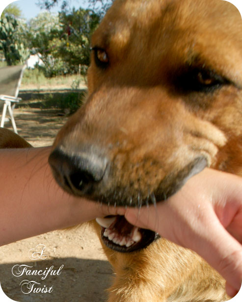 Don't worry, he doesn't bite down on me hard at all, he is just playing…