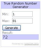 Winner is lucky number 72…..!
