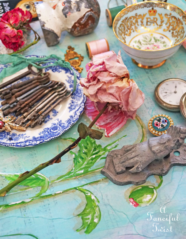 Your bits and bobs vignette is so pretty arranged on your tray. I’ve been painting old glass doorknobs on chippy wood lately.