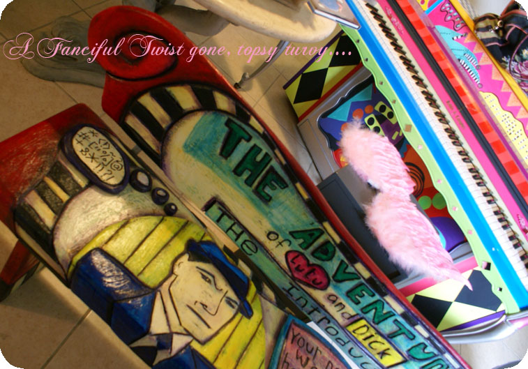 The most wonderful part of this whole fiasco, was finding treasures that were lost deep in my closet. I have lived in this house since I was 18 years old. I pretty much own everything I brought to Tucson when I left home (and much more). Oh, it is soooo exciting to find treasures I thought were lost… Jewelry I mourned about, was found!! As well as, all the rhinestone stuff and dresses from my Mexico discoteque days. So willllld!!! Horrid Huge platform shoes made me smile from ear to ear! I got them for .50 cents in the late eighties…