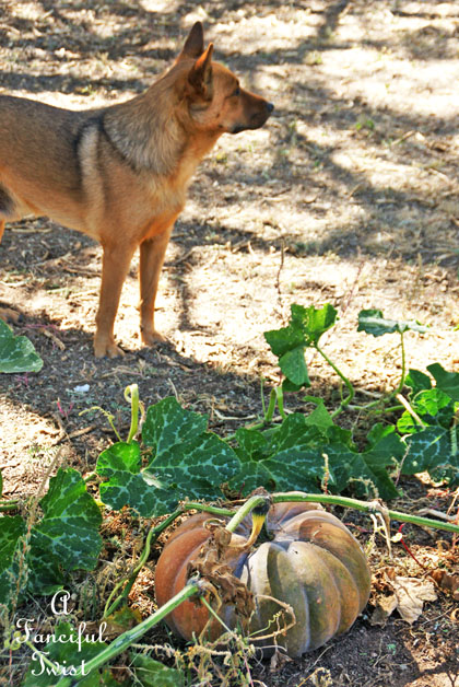 10. What a beautiful pumpkin garden! Our dog Kino is more the “supervise while lying on the porch,” type.