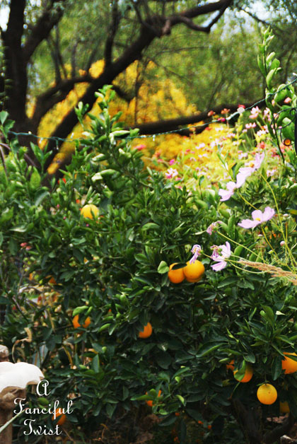 I love standing in this spot and watching the oranges and tree in the backdrop turn in unison.