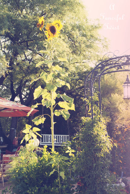 Beating down on giant sunflowers.