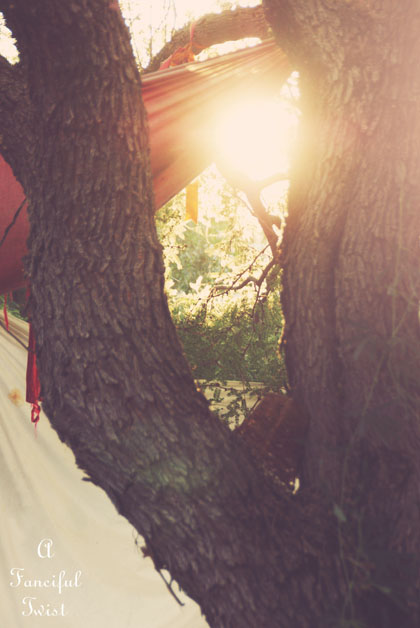 Just across the garden, under a different big tree, right by the gypsy wagon.