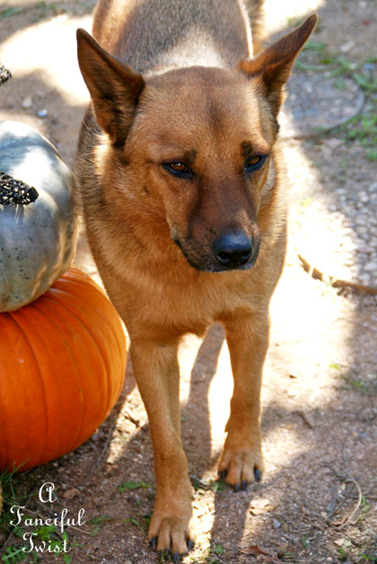 Yes, Australian Halloween is in Spring, so no Autumn colours, either! But i like your glittery branch! I think your doggy was scared he would be glitterfied too!
