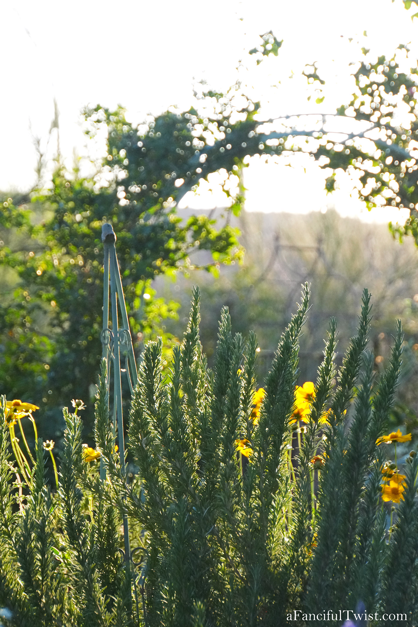 Let the sun shine all over you, as it does on the rosemary and roses.