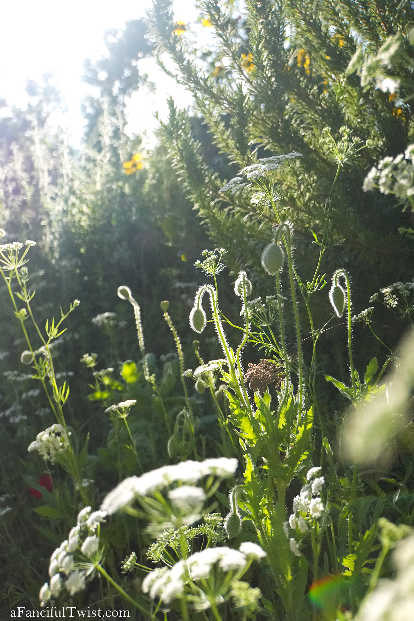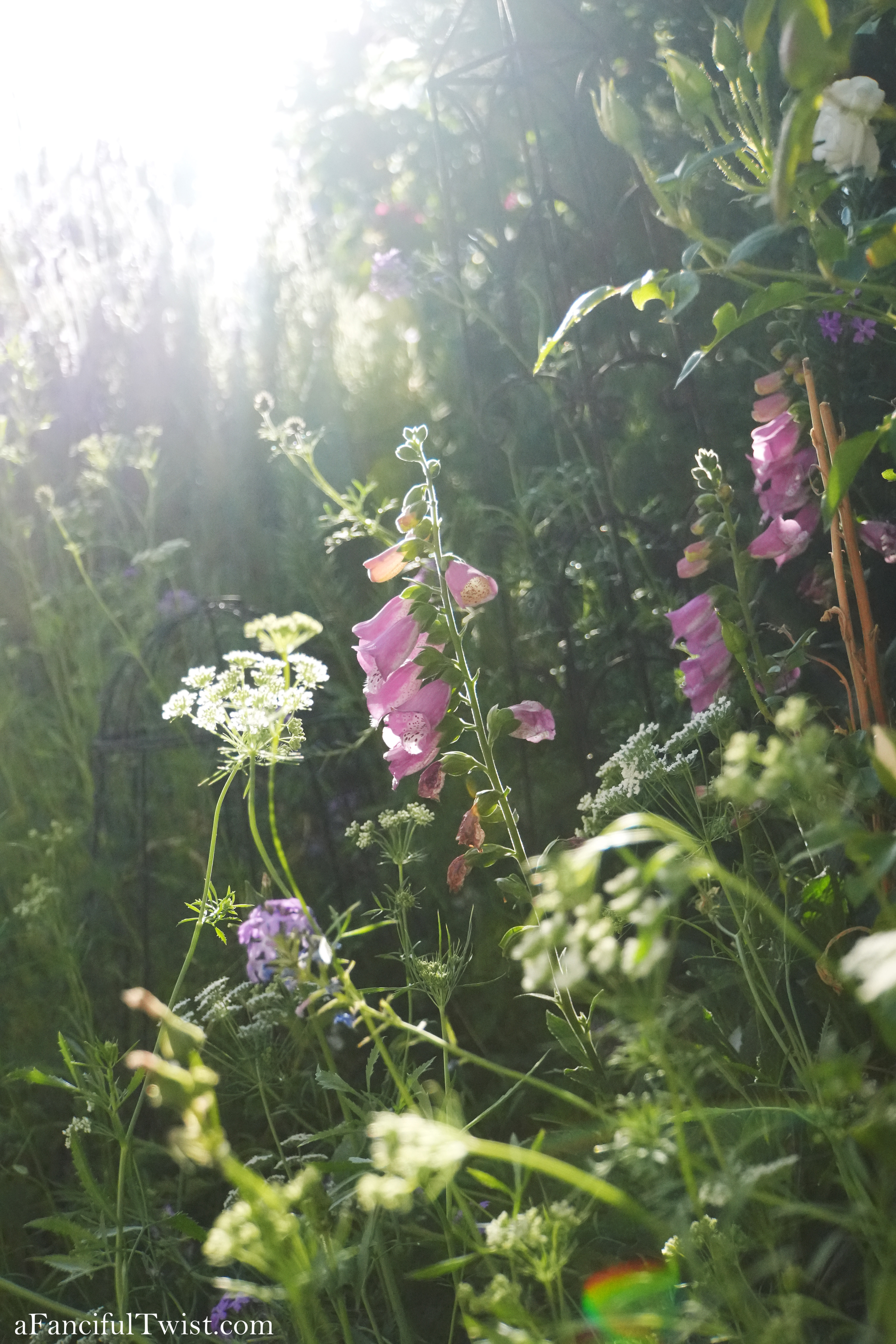 Foxglove, Queen Anne’s lace and poppy heads all come to life in the glow.