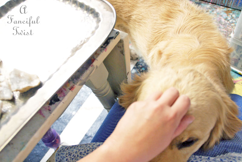 What a gorgeous dog, he looks so sweet! I love your work in progress with the blossoms! I love the flowers, your decor is very arty!