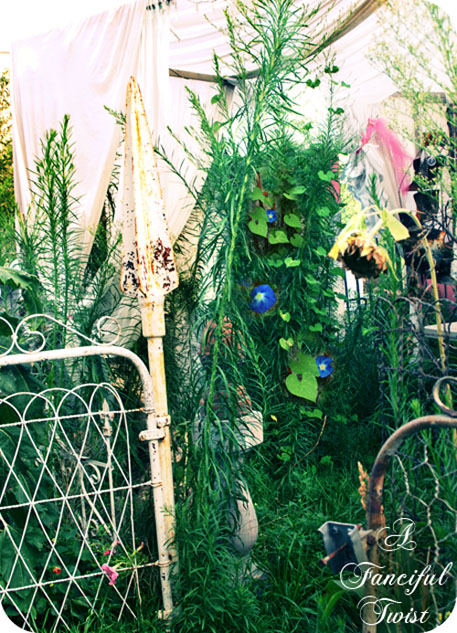 The Morning Glory I shared in the link above, has grown so much, I put in a trellis, and what you can't see from the drooping white fabric covering it at the top, is that…