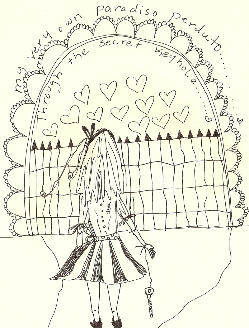 What a wonderful place this is she said. I think I would like to stay for a while and visit, and perhaps invite them back to visit me? If I tell the tales of my heart, will they laugh? Will they point their fingers and gawk? As she approached the gate, the key she carried felt very heavy…She was going to do the unthinkable. She would let people into her very own untouched Paradise. The one in her dreams, the one in her minds eye…She tip-toed to the gate…