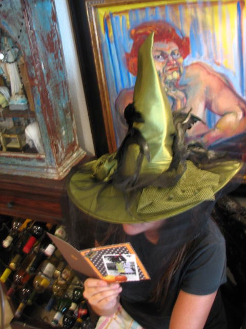 Love the witch doll, love the Larry, love the big redhead painting, & love the green hatted sister – but I am really commenting because I just have to win one of your giveaways eventually – r