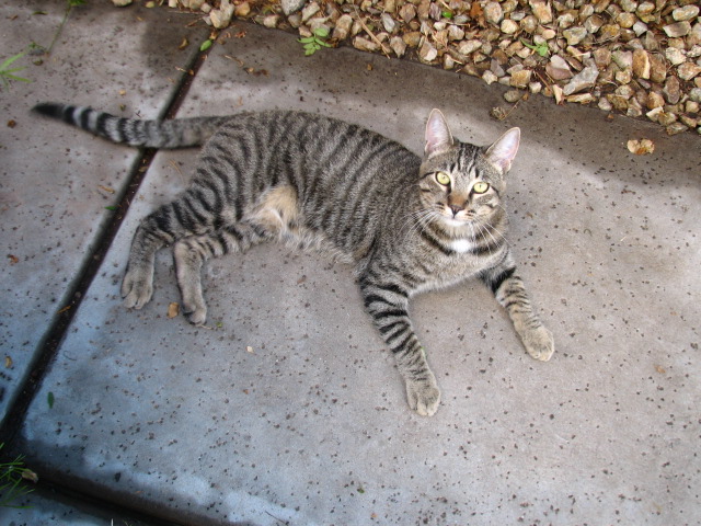 You see, I am very allergic to cats. However, I have always loved them. I have tried to have a cat or two. But two nights of swollen lips and hives in my youth, forced me to realize, it would be no pets for me… However, Larry was going to simply live in the yard and is being cared for and loved by my sister Kristen. He appeared when he was a wee bit younger… See here…(I didn’t know him then)