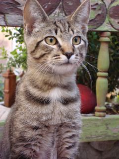 choose me! choose me! Oh, what fun I love a give-away, even when I don’t win! What a sweet kitty, he looks half cougar(something about the eyes) and half zebra! I loooove that witches hat your sis is wearing. I started my nieces halloween costume today, a pink and black witch’s dress. And now I want to be a pink and black witch. I will post it in a few days when it is done, you have to give your opinion! Have a great weekend!