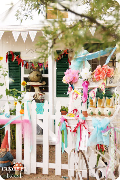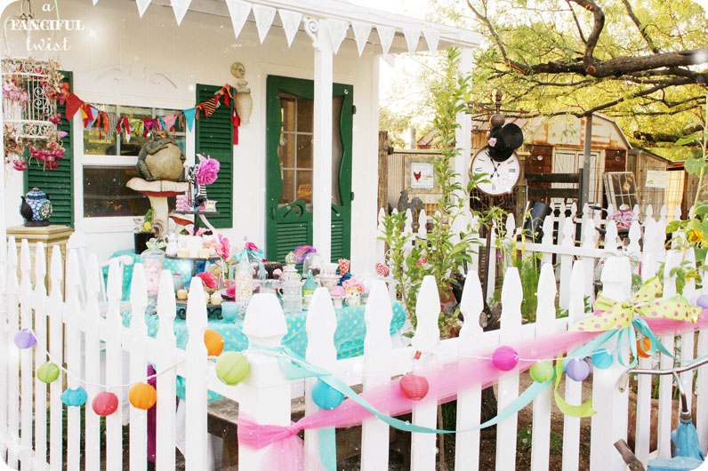 What a beautiful cottage! And a beautiful party! It looks like the fun could go on for days–although if the mood strikes you to wander a bit (as one does in Wonderland) then you’re welcome to visit me and have even more tea!