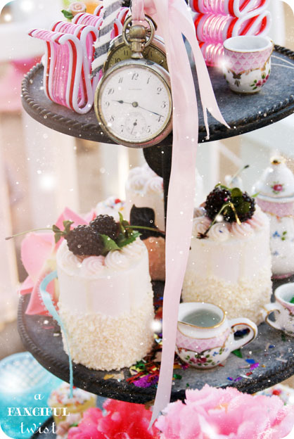 Oh dear!! Oh Dear!! I’m late, I’m late, I’m late for a very important date!!!! Do forgive me Miss Fancifulest of hostesses!! I’ve been lost in baby-land! tee hee…..but WHAT a treat awaits me here! I’m positively aching for a slice of those lovely dainties and that cake!! Swwwwooooon! You always throw the most beautiful and magical of parteeeeees! Thank You dearie-ohs!! 🖤