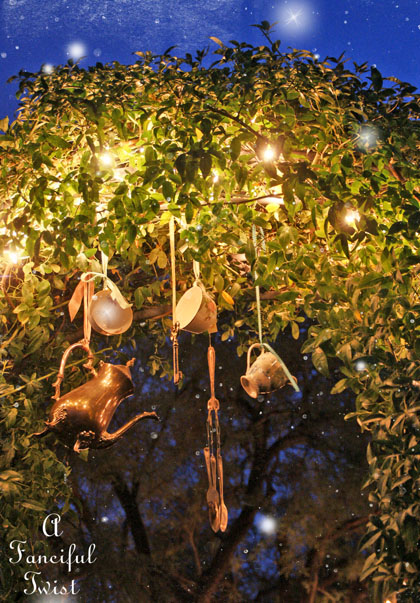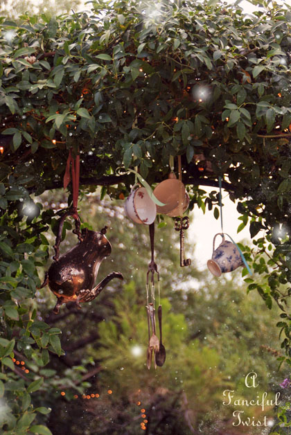 Of special delight were the tea cup wind chimes and the glitter everywhere. They made it so very magical.